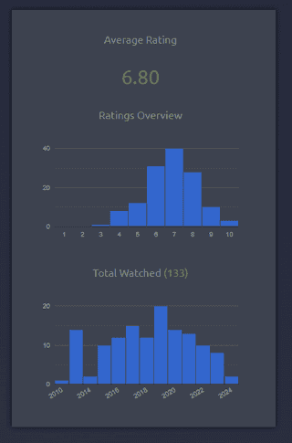 A movie rating site created for myself and my friends. Shown is part of the Profile page, which shows movie statistics.